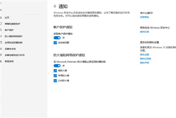 然后继续点击左侧 → 防火墙和网络保护 → 下拉找到“防火墙通知设置”→ 管理通知 → 所有通通关掉