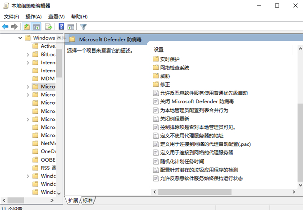 点击“管理模板/Windows组件/Microsoft Defender 防病毒”进行以下两项操作