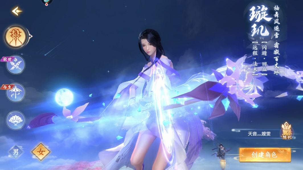 璇玑清丽脱俗,翩若惊鸿;以杖为器,聚气成冰,凝冰化形;技能特征远程群体高伤,寒泉突涌,置对手于鼓掌之间,冰龙九天,决胜千里之外