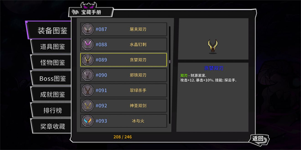 贪婪双刀就属于双刀中比较特殊的一类,应该说“贪婪系列”的武器只要捡到就可以拿着用挺久的,它的主动技能【探云手】可以让你偷到怪物身上的金币,这让你有了资本在遇见商人的时候直接买下最好的武器。看到贪婪武器就拿着吧,你不会失望的!