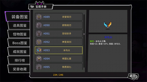 最后要介绍的是在PC版时就非常热门的一把武器——冰与火。这把武器在开启技能之后会令你同时拥有冰属性和火属性的攻击效果,冰属性可以减缓敌人的速度而火属性则可以让敌人持续掉血。开启技能之后找准机会撸boss一套,你不会失望的。
