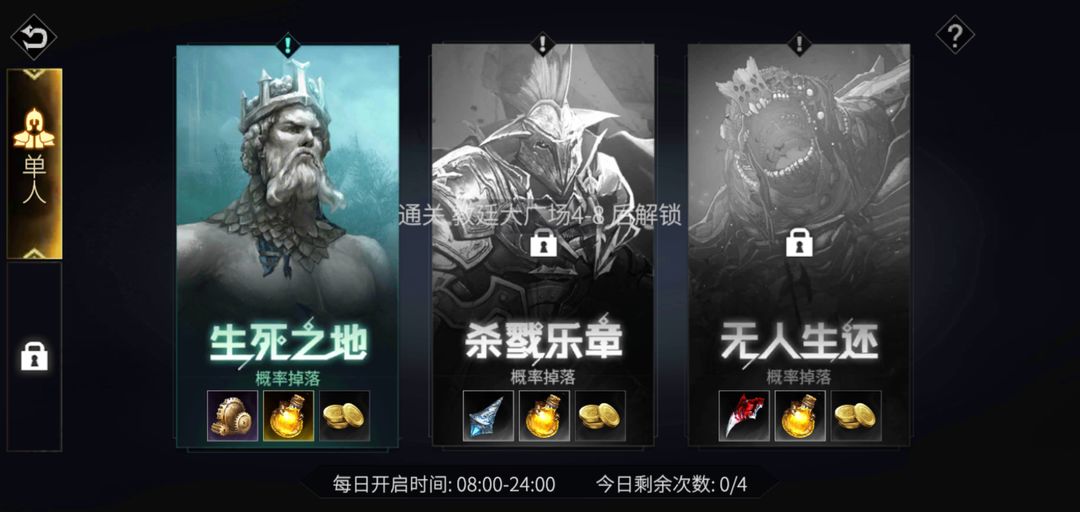 3-6牛头人,从天而降的一击,走位躲。打过后会解锁活动神之挑战单人(巨像3-6,曼尼4-5,恐惧5-5;速通挑战4-8)