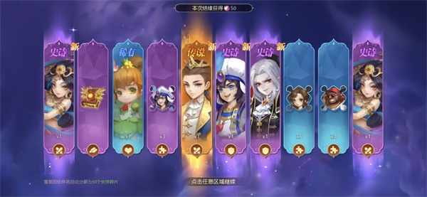 在结缘中,会抽到不同数量的伙伴碎片、完整的伙伴、伙伴升级用的魔力糖果以及提高伙伴好友度的伙伴礼物。