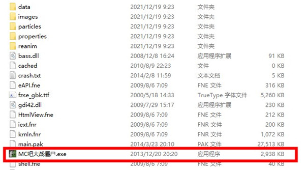 2、打开MCpvz文件夹,点击MC吧大战僵尸.exe,即可运行游戏。