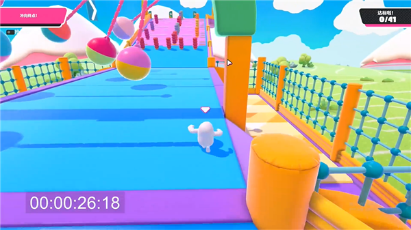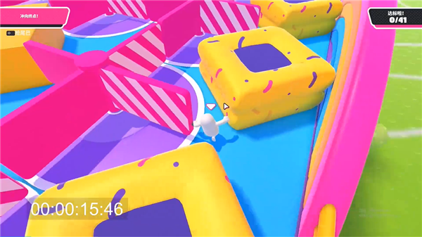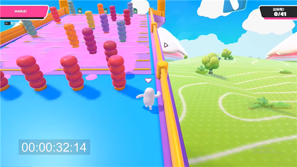 1、本地图分四段赛道,第一赛段为圆木,难度较大,建议直接掉到下方斜坡进入下一赛段。