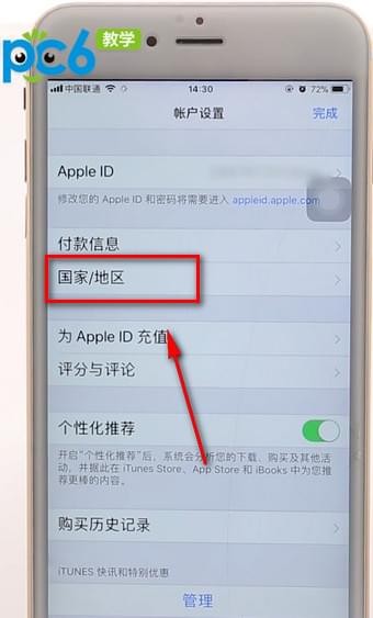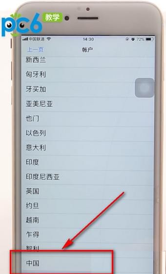 3.选择国家地区、“更改”,滑到底端选择中国,点击“同意”即可。