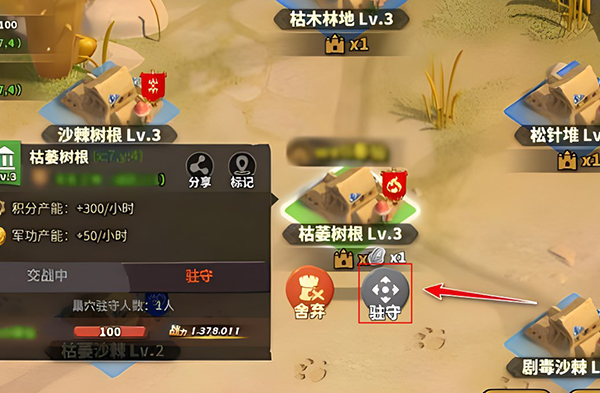 4、驻守成功后,玩家就可以点击上方的军功进行查看啦,会显示军功个人产能则表示每小时可获得对应的军功。