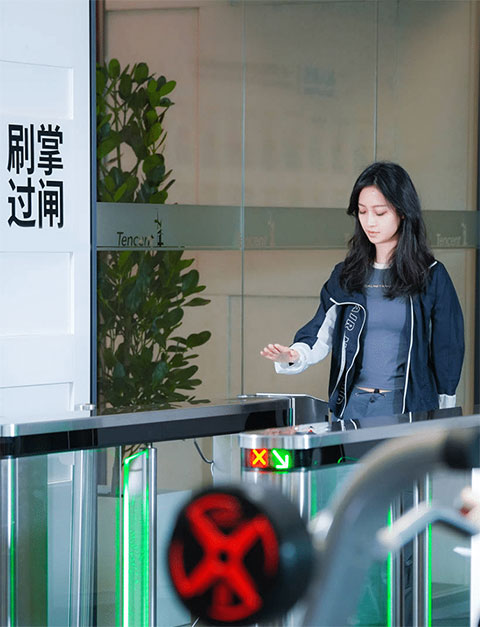 乘坐地铁时,乘客需找到带有圆环标志的刷掌闸机,将掌心面对圆环内的识别区。完成识别后,圆环变为绿色,闸机将自动打开。