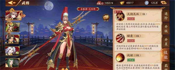 吕玲绮属于刺客职业,小技能是直接对地方后排造成大量伤害,并且可以召唤分身获得自身所有的技能并造成本体50的伤害。此外作为脆皮刺客职业,自身小技能触发期间可以获得60%的闪避以及60%的吸血效果,本期召唤后自身更是能进入无敌状态,搭配上奶妈实战效果很强。