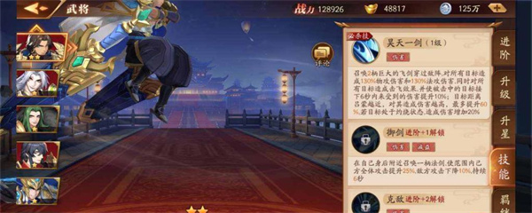小技能御剑可以增加队友25%的伤害,并且克敌以及其他技能都是直接攻击敌方生命值最少的角色,可以很好搭配陆逊必杀技点杀敌方后排的脆皮。