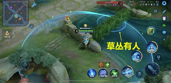 朵莉亚一技能在击中草丛里的敌人后,会出现水波特效,实战中可以用来远距离探测草丛。