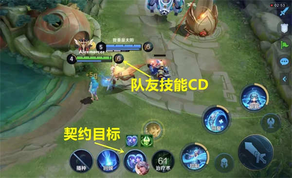 三技能优先给绑定契约目标的队友刷新技能,若契约目标不在周围,则会给附近技能CD最长的队友刷新技能。