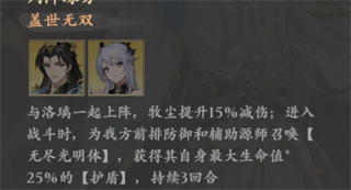 此组合输出能力一般,但之所以会成为PVE推荐的强势组合,主要是因为洛璃具有团队充能的作用,并且加速己方怒气回复的同时还能削减敌方怒气,此消彼长,不仅己方输出能力得到提升,同时还变相的提升己方的生存能力。而牧尘虽然具有极高的生存能力,但其怒攻倍率受防御值影响的特性,在抗下敌人大量伤害的同时,自身也可以造成不俗的伤害。
