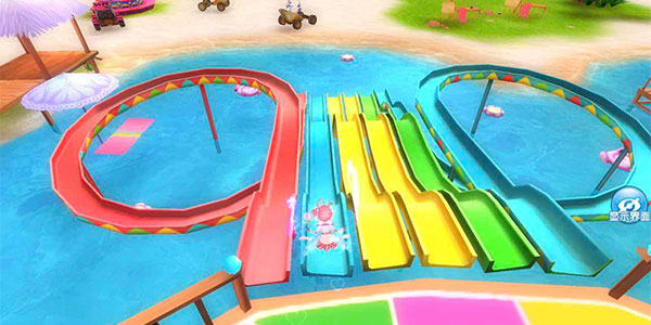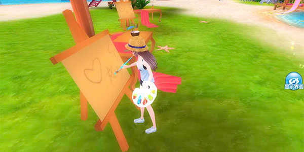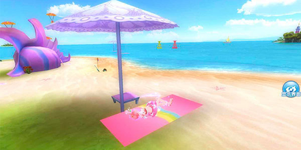 海边有许多可爱的沙滩垫,点击就可以躺上去享受日光浴