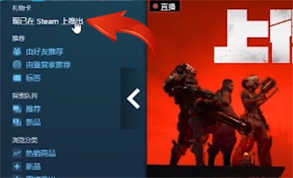 1.在主页面上方菜单栏点击【商店】选项进入steam商店,随后在商店左侧礼物卡下选择【现已在steam推出】选项,即可进入礼物卡的详细查看页面。