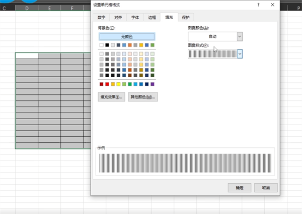 2.在单元格设置中点击上方的填充选项栏,选择一种填充的方式,随后点击一种颜色便可以在单元格中填充一种颜色底纹,底纹颜色和类型可以随时更改。