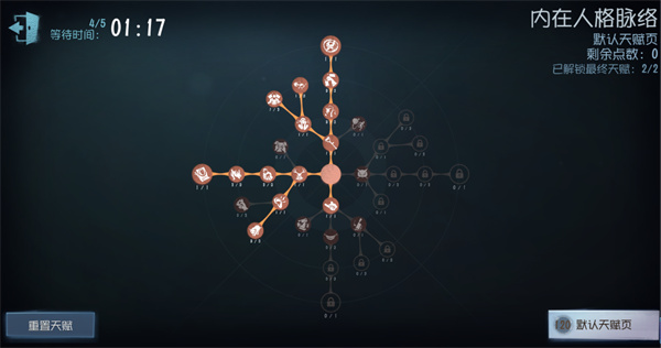 这套天赋没有携带【挽留】,但既可以掌握前期的对局节奏,在后期开门战也有一定的优势。【张狂】可以快速解锁一阶技能,【底牌】在面对后期复杂的对局情况时,相当于一张王牌。由于满进度的【熔蜡】可以对求生者造成伤害,相对而言【挽留】的作用会大大降低。