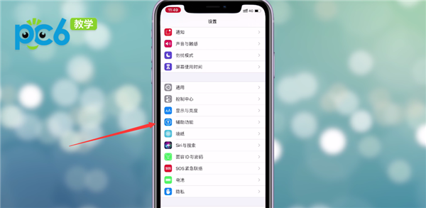 首先打开iPhone的桌面,然后进入【设置】,在【设置】中选择【辅助功能】选项。