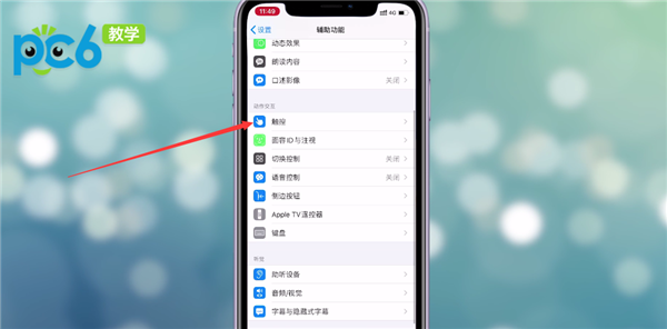 在辅助功能中找到一个选项叫做【触控】,进入触控之后,点击一下【辅助触控】按钮将它打开。