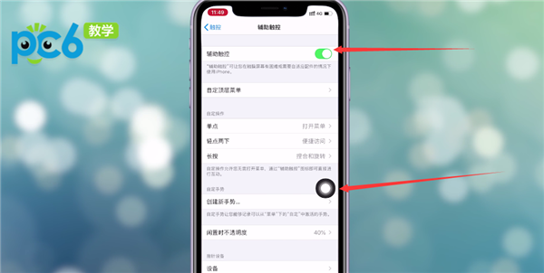 当辅助触控打开了之后,就能看到这个小圆点了。