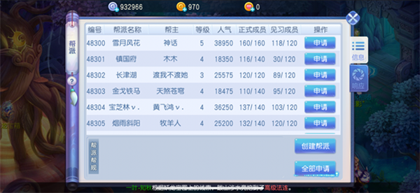 加入帮派,可以说是一件非常重要的事情,首先从基本的来说就是获取帮派任务,以及帮派的各种活动!并且最最最关键是领取每日的双倍经验,这样才能够跟上大家升级的脚步!