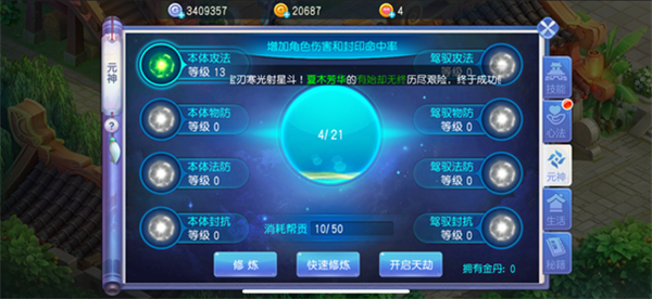 完成每天的帮派任务,以及一些个帮派的活动啊,有了帮贡,那就是肯定要赶紧点元神,输出职业优先选择攻击,辅助职业优先选择防御,至于这个抗封在前期可以稍微缓一缓。