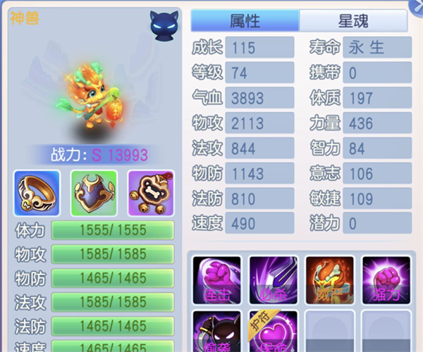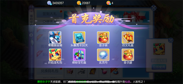当然,两周的时间也是非常的长的,如果个人追求不算太高的话,首冲送的神兽,随便打两本书也足够任务了,而且大家可以看到神兽的特性,就是物法双休,他的资质不管是做法术,还是做物理都能够满足,关键获得条件特别的低,任何一个玩家都可以轻松达成。