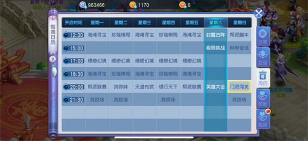 平时一定要注意观察每日活动,在我们的点开日常界面,可以选择一个周丽的界面,把每周的活动都可以一览无余,保证自己尽量的不漏掉,每漏掉一个就等于资源减少一部分。