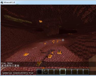 5、但是需要注意地狱世界和末地死亡仍然会掉落,如果需要在地狱里死亡不掉落就到地狱世界输入上面的指令