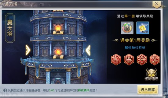 1、开启条件:等级达到50级,完成主线任务“通天之塔”