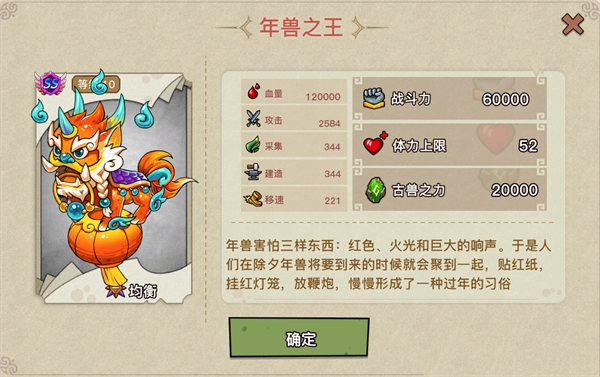 年兽害怕三样东西:红色、火光和巨大的响声。于是人们在除夕年兽将要到来的时候就会聚到一起,贴红纸,挂红灯笼,放鞭炮,慢慢形成了一种过年的习俗