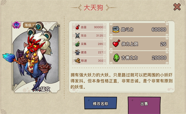 拥有强大妖力的大妖,只是路过就可以把周围的小妖吓得发抖。但本身性格正直、非常忠诚,是个非常有原则的妖怪。