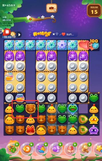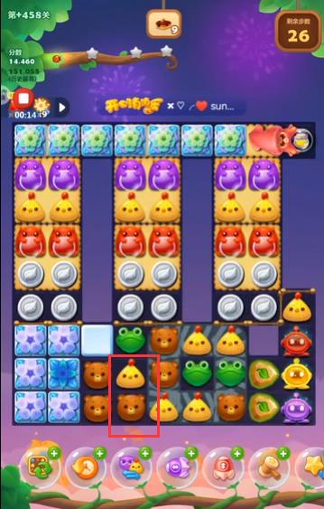 2、将小鸡和小熊换一下位置,将小鸡和小熊同时消掉。