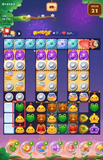 3、将青蛙和小鸡换一下位置,将小鸡消掉。