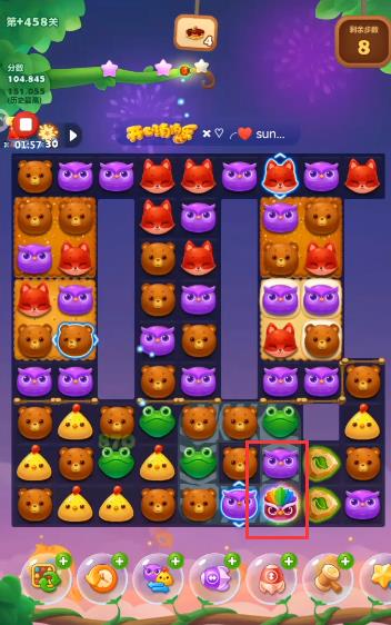 6、将魔力鸟往猫头鹰那边滑,将所有的猫头鹰消掉。