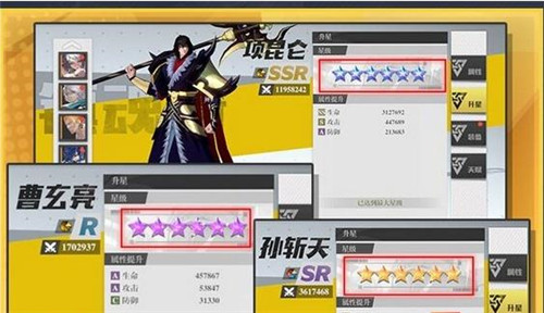可见SSR角色升星碎片的缺口还是相当大的,所以建议前期可以考虑培养一些R卡、SR卡用作过渡,升满星也容易。