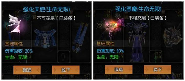 守护天使与小恶魔属性如其名字一样简单明了,守护天使会增加玩家15%伤害吸收,小恶魔会增加玩家15%伤害加成。