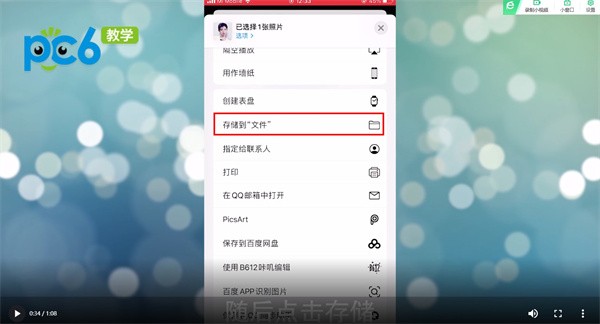2、点击发送,再上滑页面,找到【存储到“文件”】,随后点击存储。