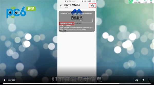 2、点击右上方的倒感叹号图标,即可查看尺寸信息。