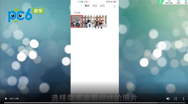 1、打开图库,选择需要查看尺寸的照片。
