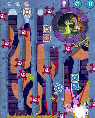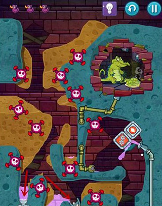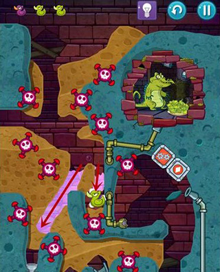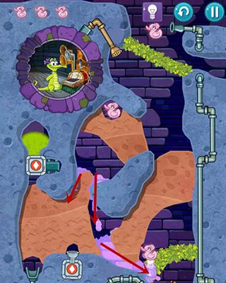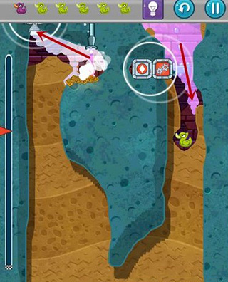 第一只鸭子就特别难收集,清水要避开鸭子又要避开炸弹。小编建议垂直划开变成毒水后就轻松咯。