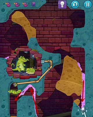 划开阻挡在清水前面的所有泥土,让清水全部通向小顽皮的屋子,轻松过关。