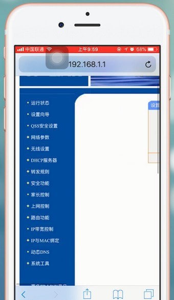 2.当手机连接上路由器之后,通过手机浏览器登录路由器的后台设置界面,路由器本地地址在路由器的背面标签上有,一般默认为192.168.1.1。