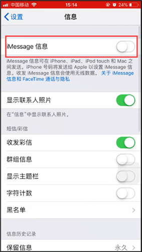 将iMessage信息选项选为关闭,iMessage就关闭成功了。