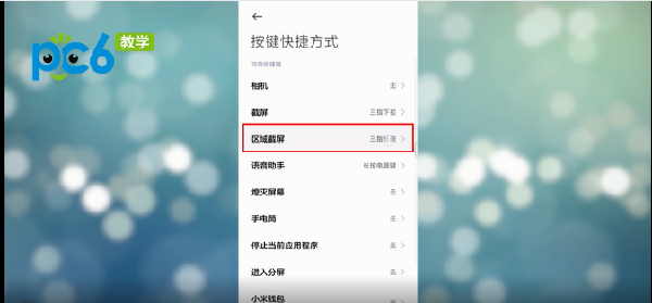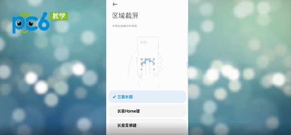 点击【区域截屏】,并选择一种区域截屏的手势,选择手势之后 ,根据选择的手势触发区域截屏,
