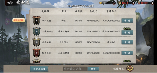 3、未标注“免审批”的武林盟在申请后需要武林盟里拥有权限的玩家同意才能加入