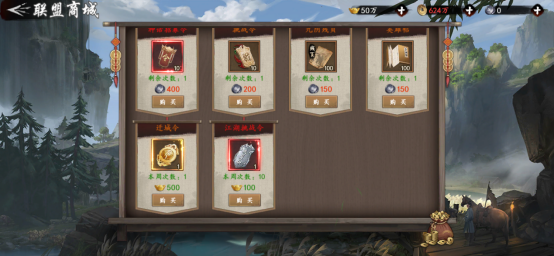 联盟商店:玩家可在此处通过消耗问鼎江湖获得的联盟币兑换物品