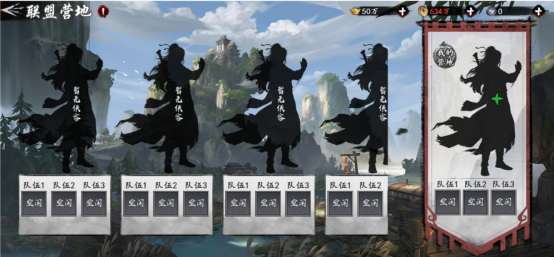 联盟营地:每个玩家可放置3支队伍,问鼎江湖比赛期间,其他在战场的玩家可以在自己武林盟大营中调用,放置后会自动扣除10次免费进攻机会。一旦自己进入战场,会将队伍自动放回自己的队伍中。