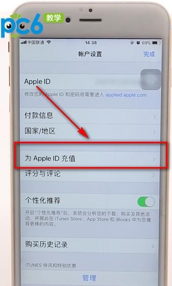 3.这时就可以看到“为apple id 充值”选项,但在充值之前,你需要确保已经开通至少一种支付方式,