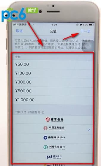 5.这里我们以“快捷支付”为例,接下来就进入到充值页面,选择金额和银行,点击“下一步”,选择一种授权方式,以“手机”为例,核对信息之后点击“下一步”,稍后会接到系统电话,按指示输入付款密码之后就充值成功了。